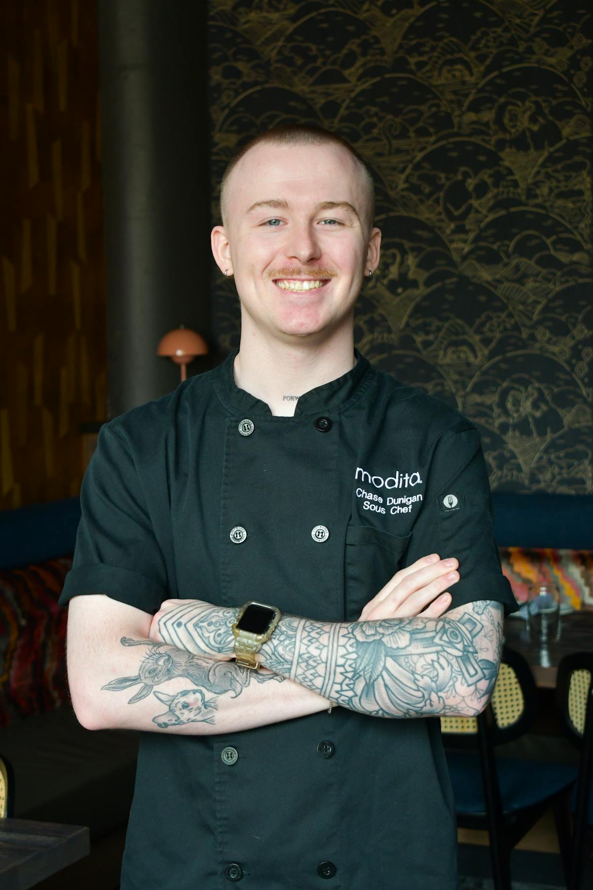 Chef Chase Dunigan's culinary journey began in the small town of Benton, Kentucky. At 20, he decided to pursue his passion for cooking, leading him to Sullivan University in Louisville, KY, where he earned his Associate's degree in Culinary Arts. His first restaurant job was at a family friend's mom-and-pop establishment, where he started as a dishwasher and quickly moved to cooking due to his natural talent and love for the kitchen. After graduating, Chase found work at Mesh Louisville, which eventually brought him to Livery downtown and, ultimately, to Modita. With nearly a decade of experience in the industry, Chase has honed his skills and developed a deep appreciation for the craft.